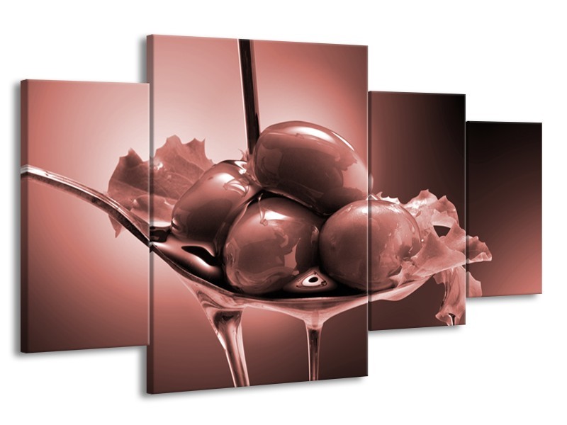 Glasschilderij Olijven, Keuken | Bruin, Rood | 160x90cm 4Luik
