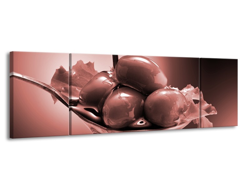 Glasschilderij Olijven, Keuken | Bruin, Rood | 170x50cm 3Luik