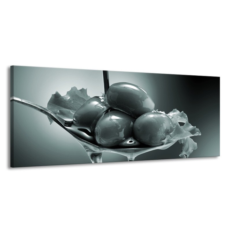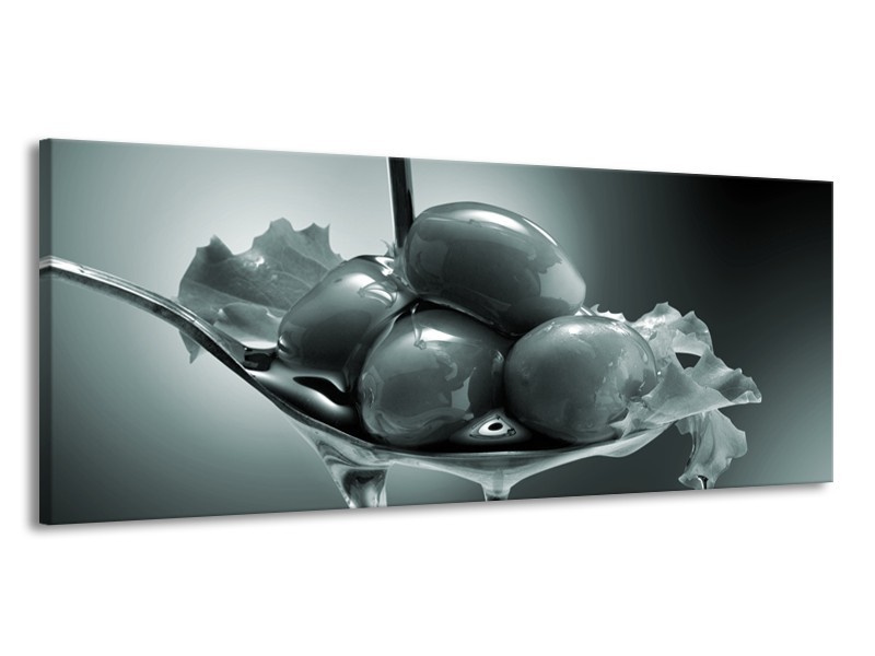 Glasschilderij Olijven, Keuken | Grijs, Groen | 145x58cm 1Luik