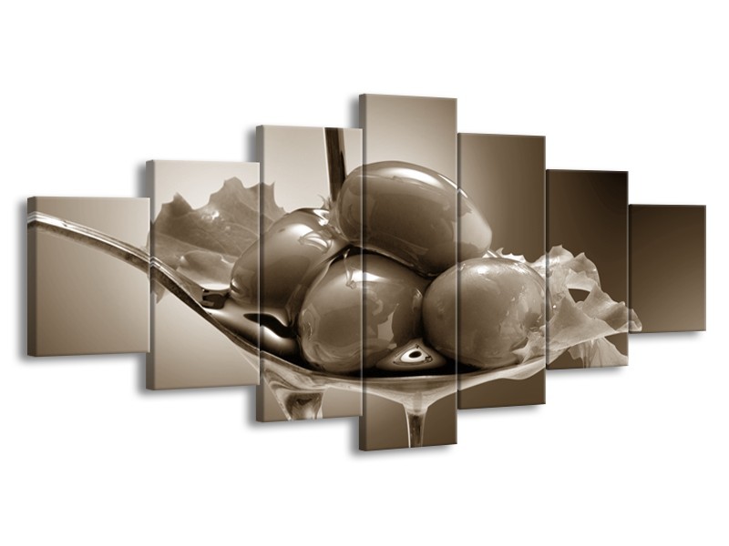 Glasschilderij Olijven, Keuken | Sepia | 210x100cm 7Luik