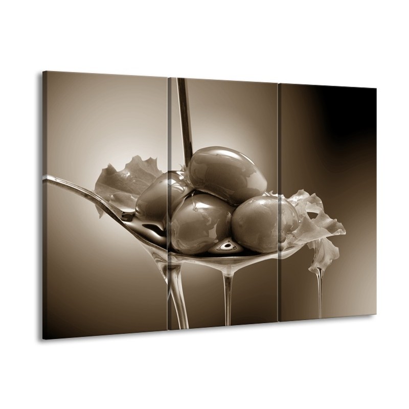 Glasschilderij Olijven, Keuken | Sepia | 60x90cm 3Luik
