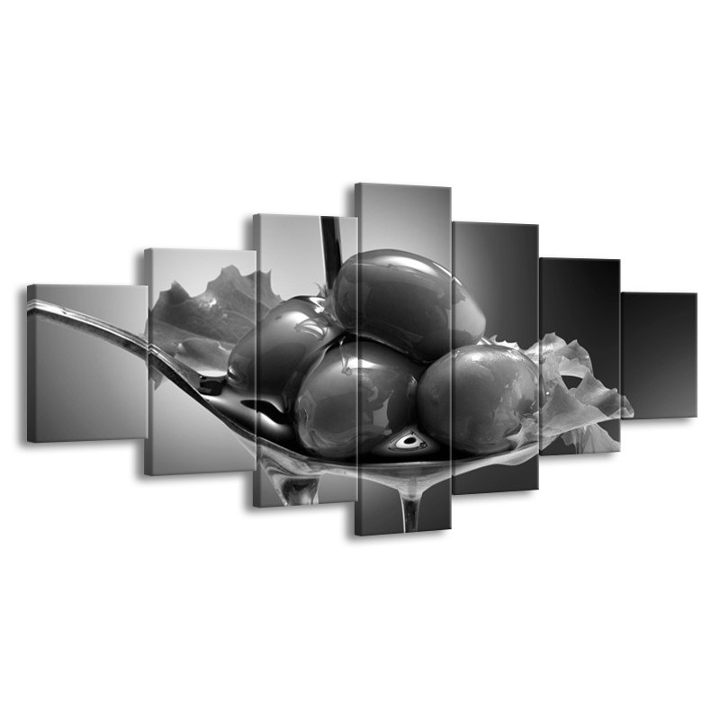 Glasschilderij Olijven, Keuken | Zwart, Grijs | 210x100cm 7Luik