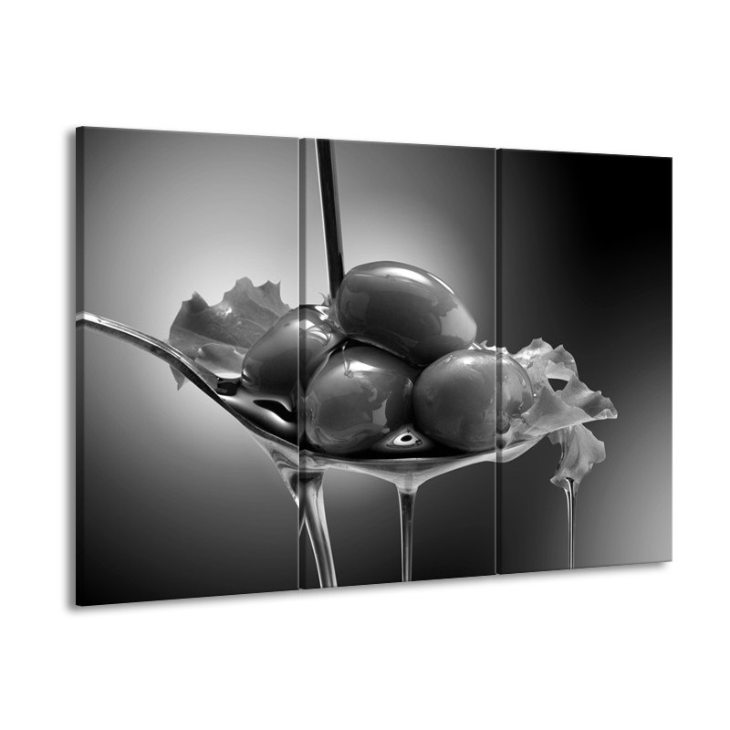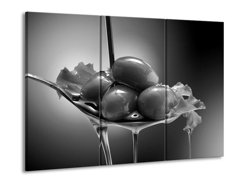 Glasschilderij Olijven, Keuken | Zwart, Grijs | 60x90cm 3Luik