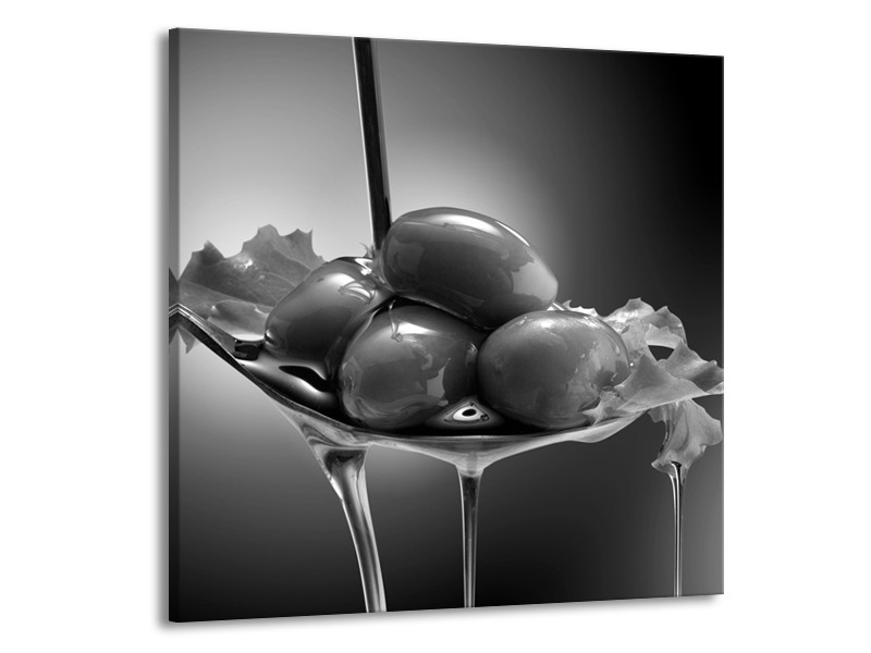 Glasschilderij Olijven, Keuken | Zwart, Grijs | 70x70cm 1Luik