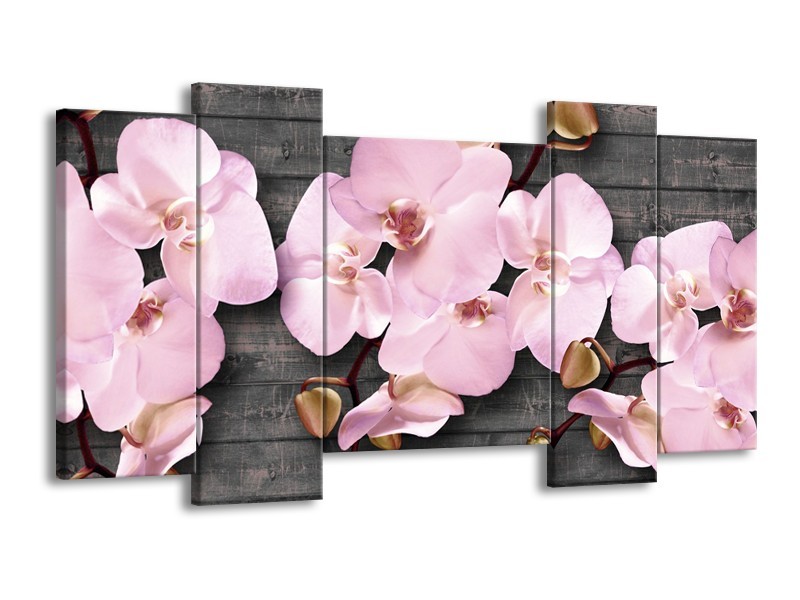 Glasschilderij Orchidee, Bloemen | Grijs, Roze | 120x65cm 5Luik