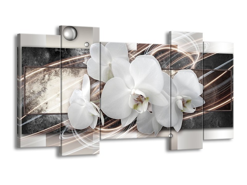 Glasschilderij Orchidee, Bloemen | Grijs, Wit | 120x65cm 5Luik