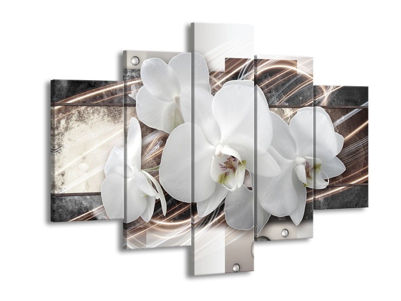 Glasschilderij Orchidee, Bloemen | Grijs, Wit | 150x105cm 5Luik