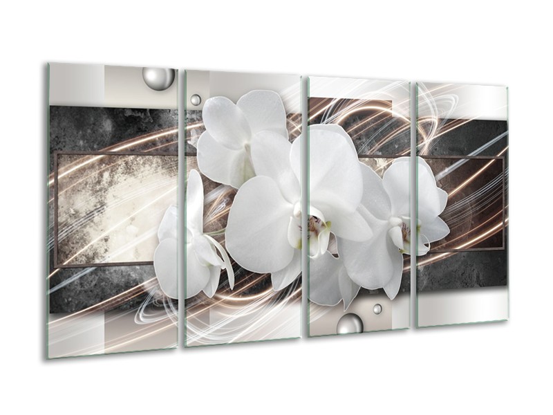 Glasschilderij Orchidee, Bloemen | Grijs, Wit | 160x80cm 4Luik