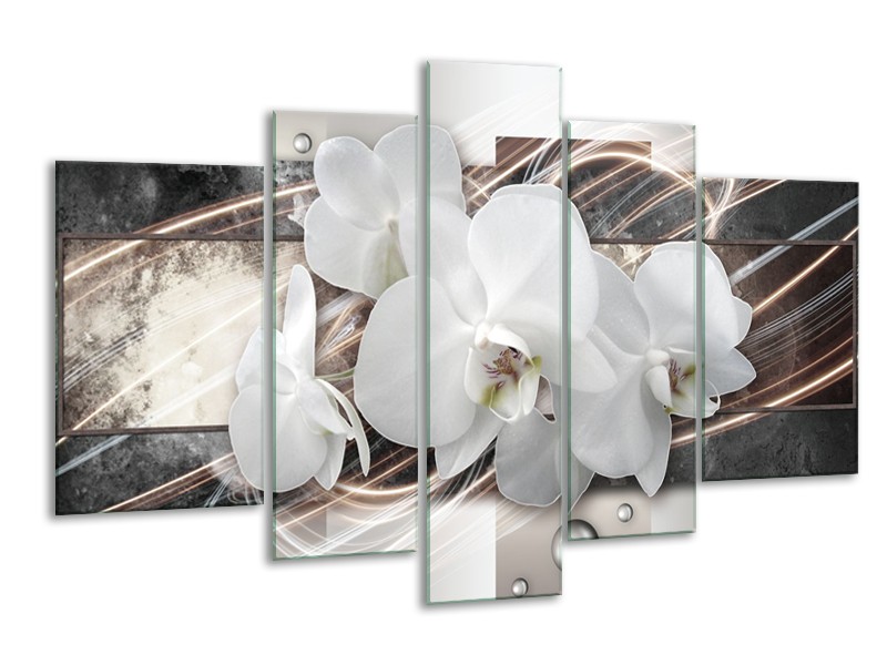 Glasschilderij Orchidee, Bloemen | Grijs, Wit | 170x100cm 5Luik