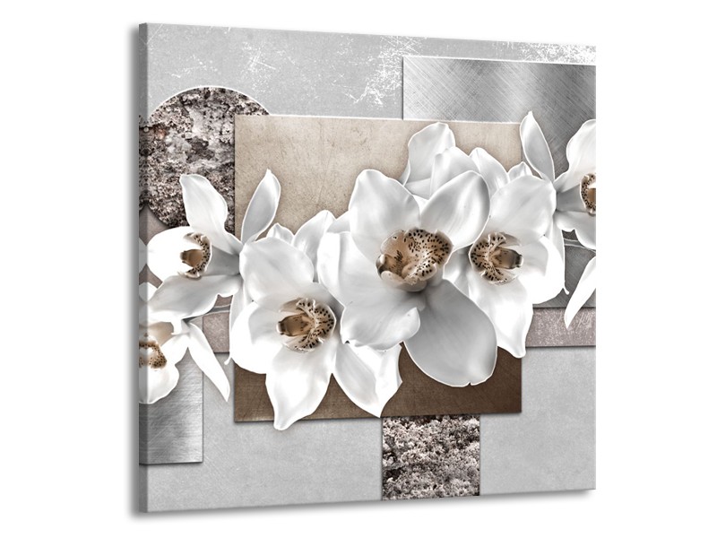 Glasschilderij Orchidee, Bloemen | Grijs, Wit | 70x70cm 1Luik
