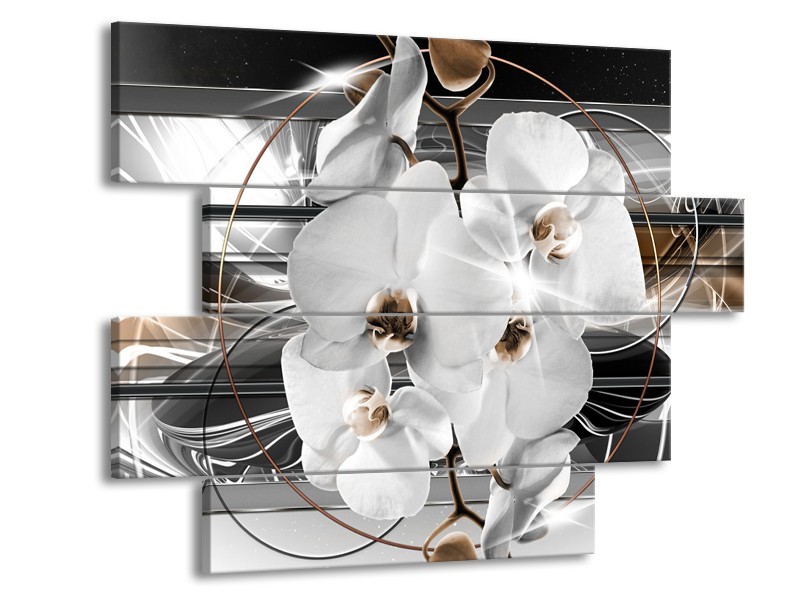 Glasschilderij Orchidee, Bloemen | Zilver, Wit | 115x85cm 4Luik