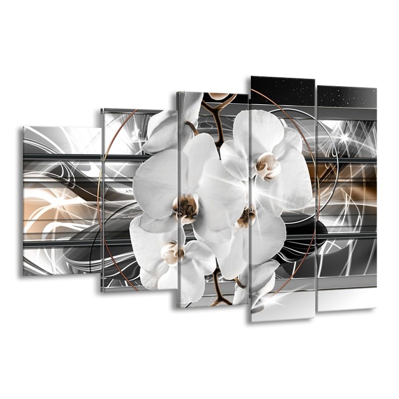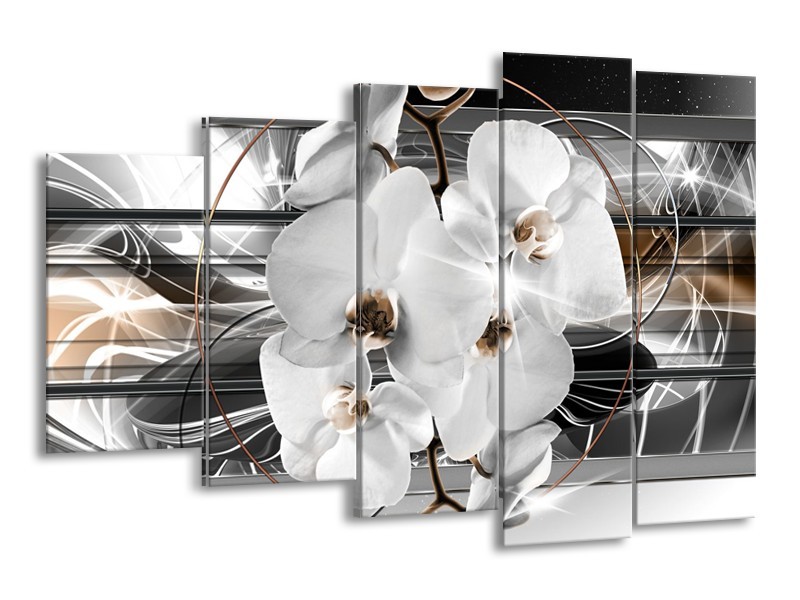 Glasschilderij Orchidee, Bloemen | Zilver, Wit | 150x100cm 5Luik