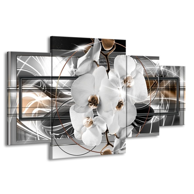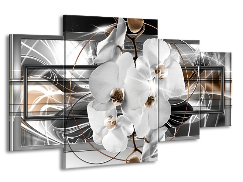 Glasschilderij Orchidee, Bloemen | Zilver, Wit | 160x90cm 4Luik