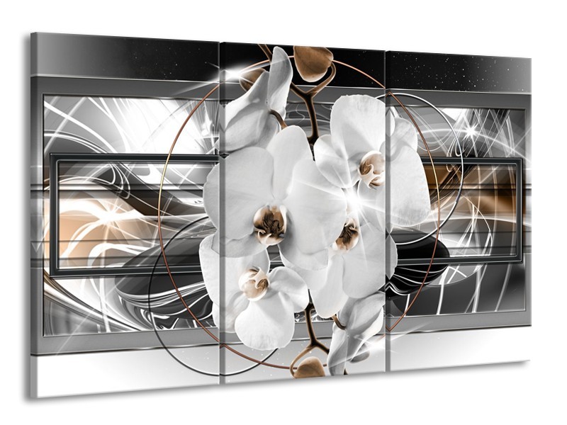 Glasschilderij Orchidee, Bloemen | Zilver, Wit | 165x100cm 3Luik