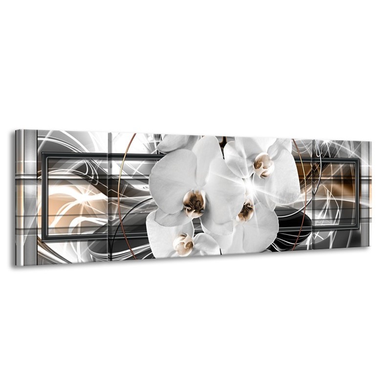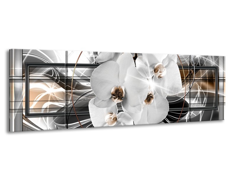 Glasschilderij Orchidee, Bloemen | Zilver, Wit | 170x50cm 3Luik