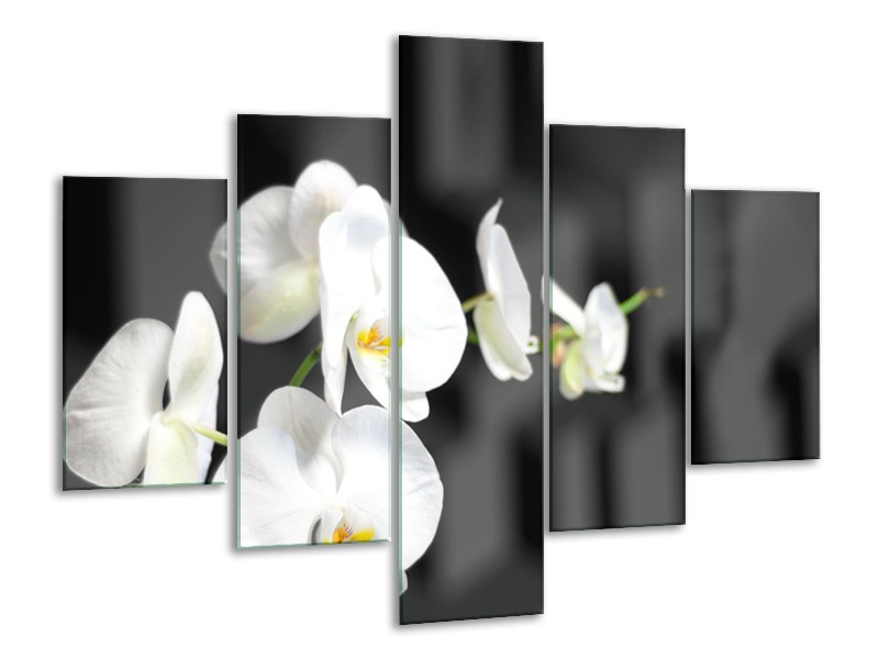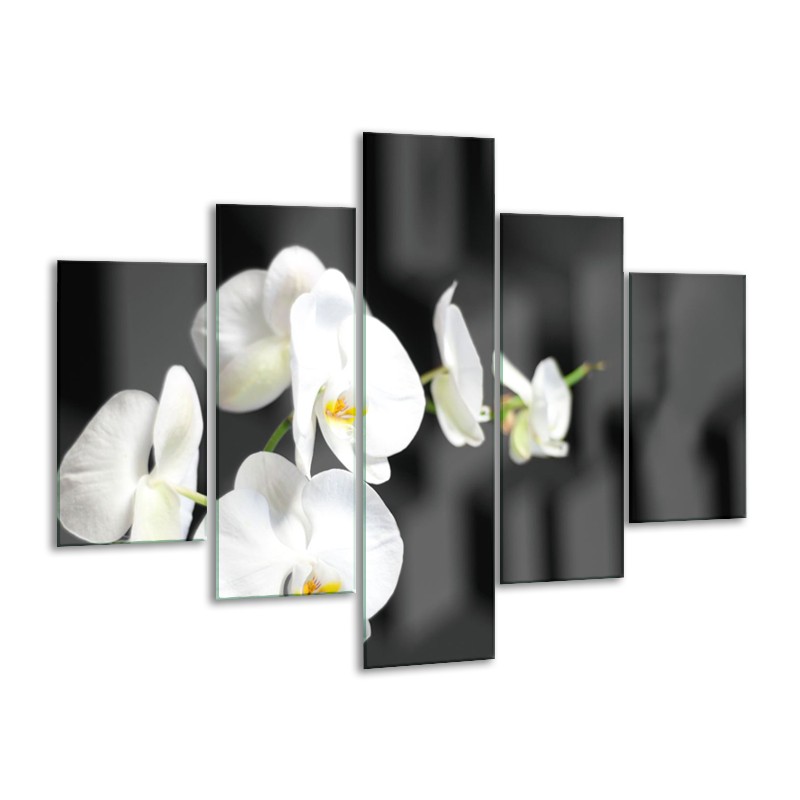 Glasschilderij Orchidee, Bloemen | Zwart, Wit | 100x70cm 5Luik