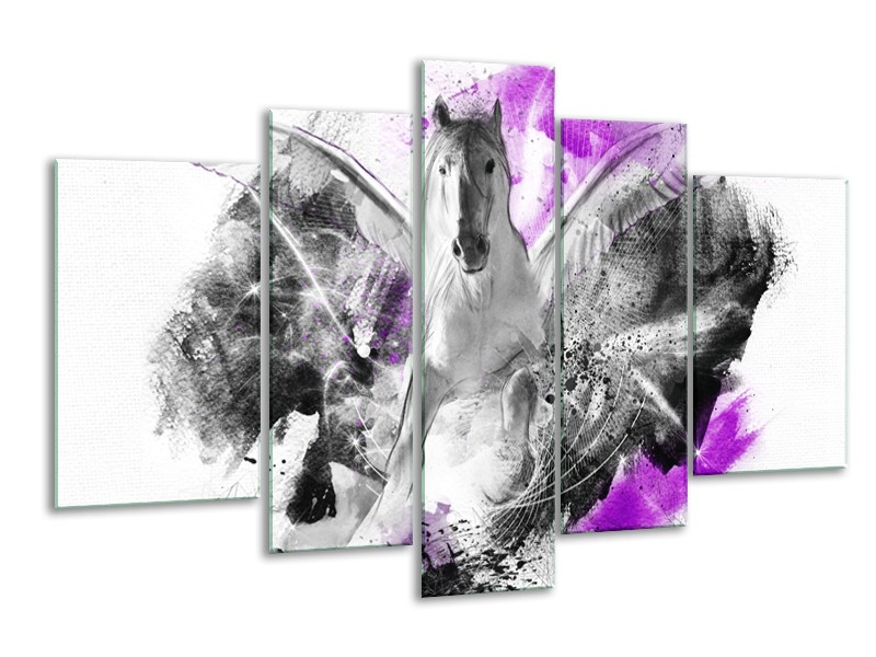 Glasschilderij Paard, Abstract | Paars, Grijs, Wit | 170x100cm 5Luik
