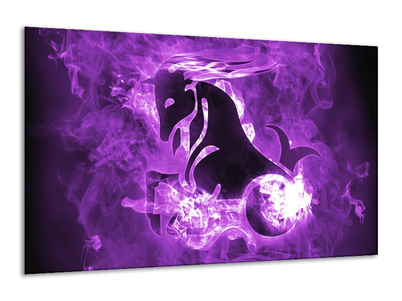 Glasschilderij Paard, Abstract | Paars, Zwart, Wit | 120x70cm 1Luik