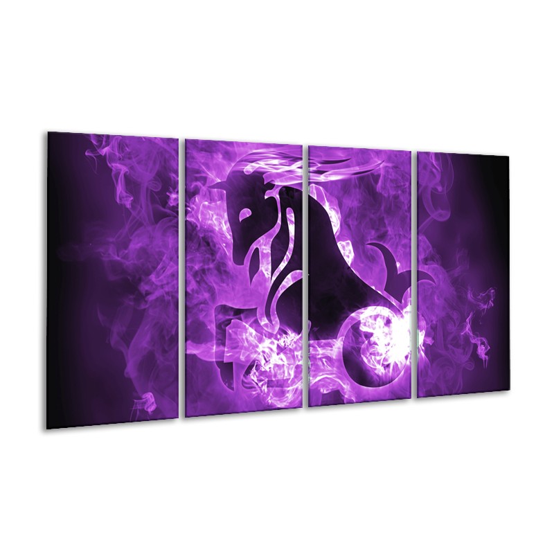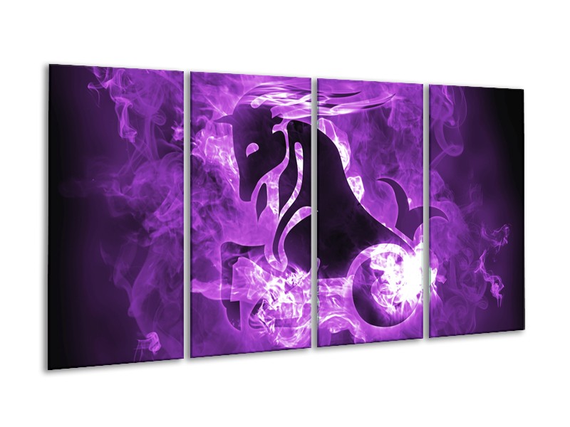 Glasschilderij Paard, Abstract | Paars, Zwart, Wit | 160x80cm 4Luik