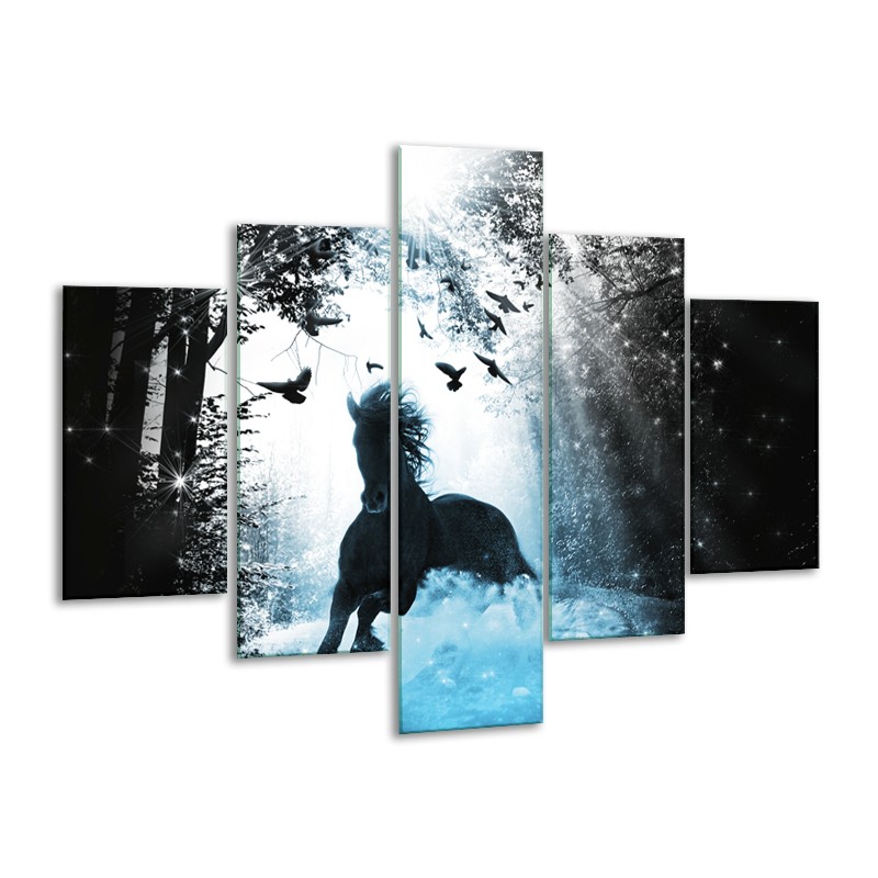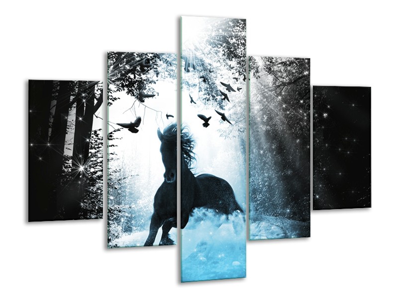 Glasschilderij Paard, Dieren | Blauw, Zwart, Wit | 100x70cm 5Luik