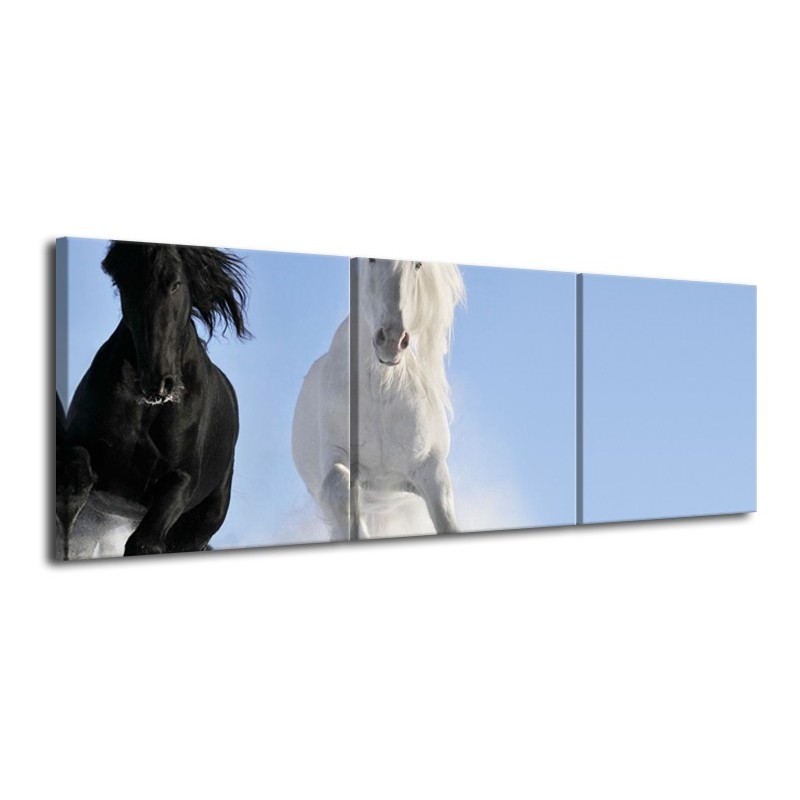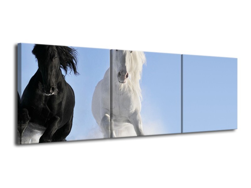 Glasschilderij Paard, Dieren | Blauw, Zwart, Wit | 120x40cm 3Luik