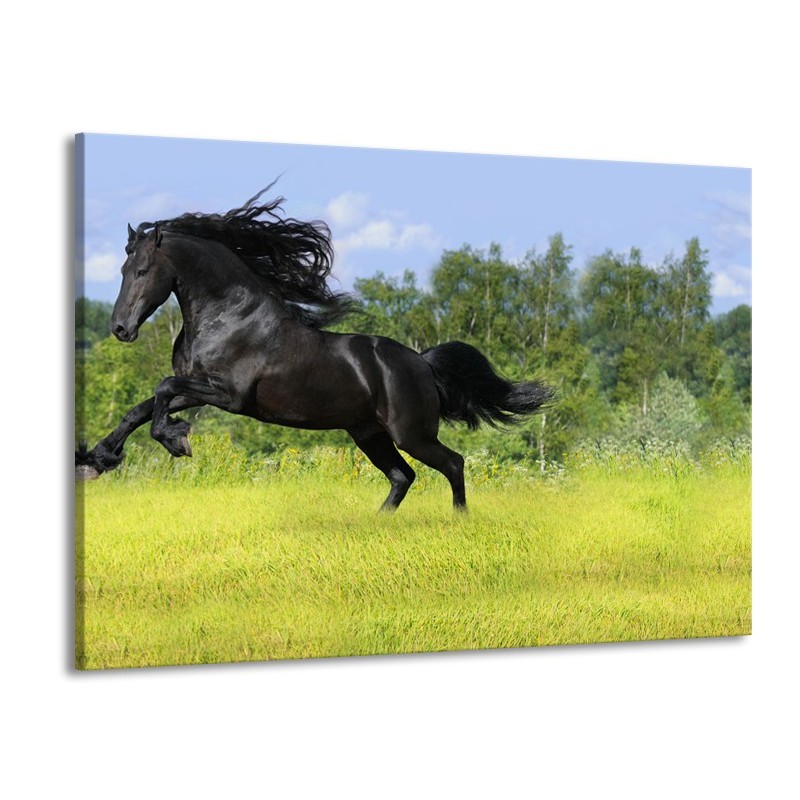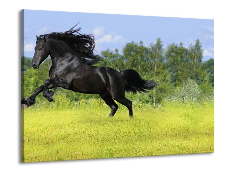 Glasschilderij Paard, Dieren | Zwart, Groen | 100x70cm 1Luik