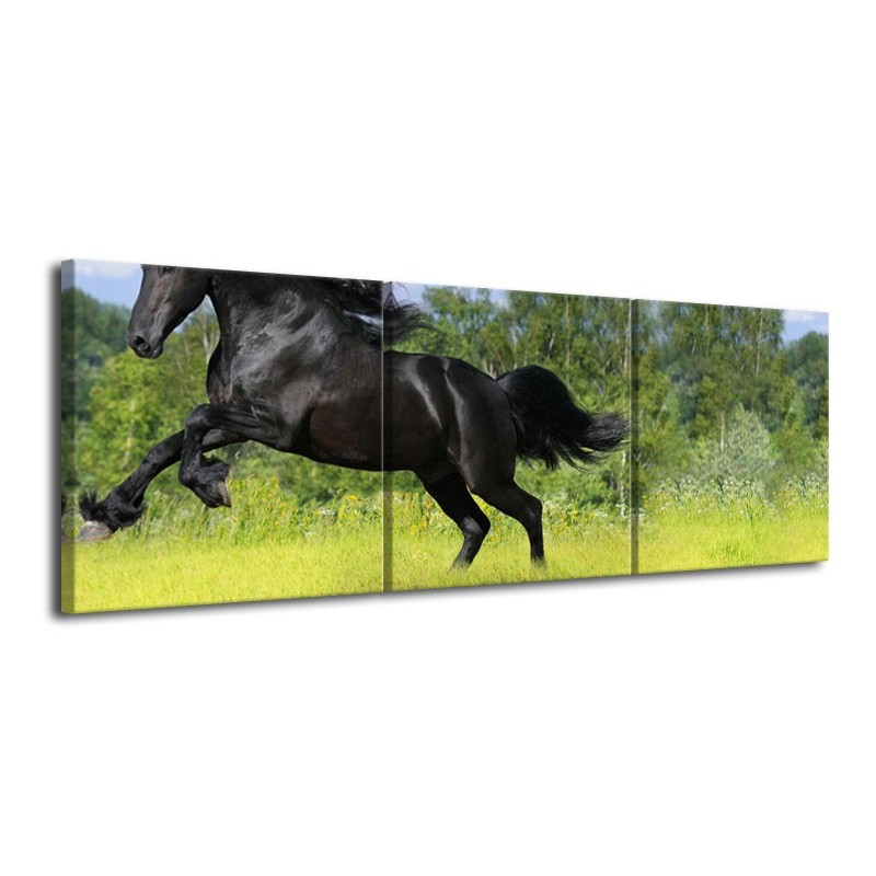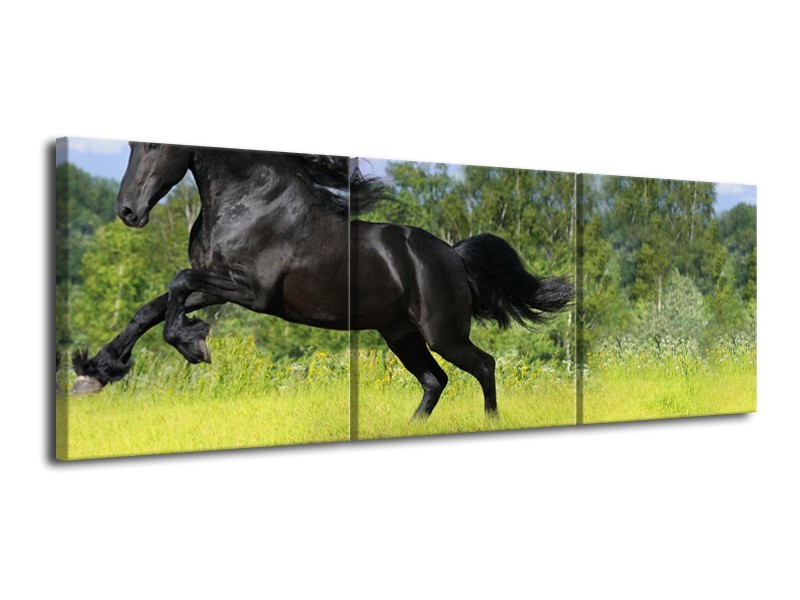 Glasschilderij Paard, Dieren | Zwart, Groen | 120x40cm 3Luik