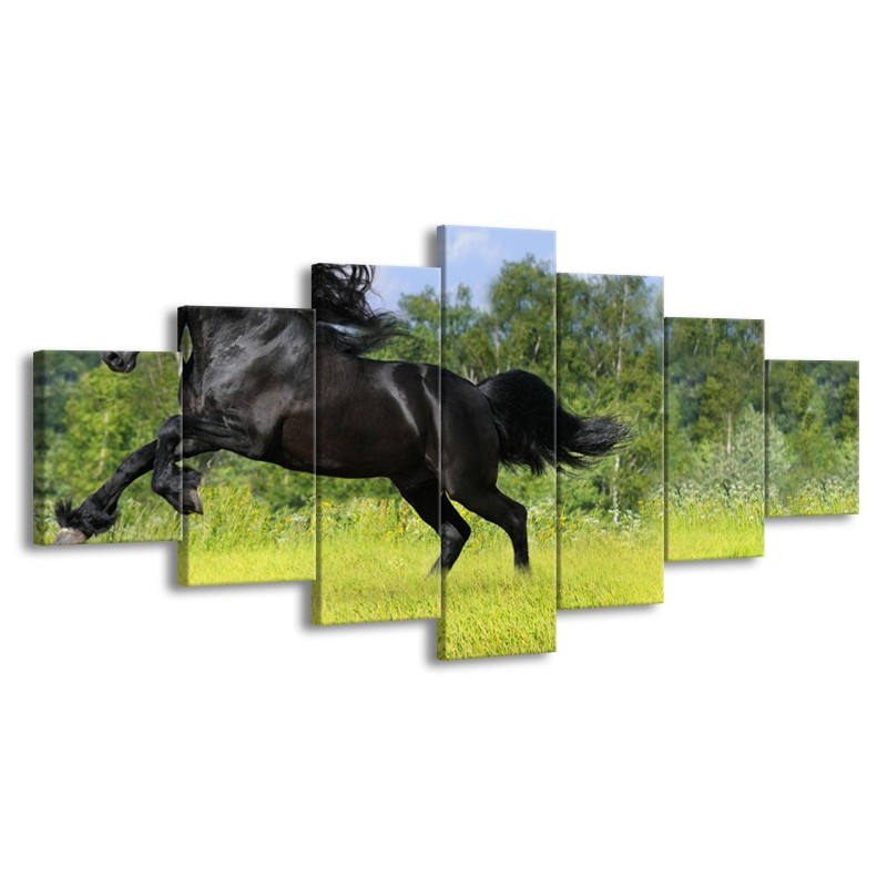 Glasschilderij Paard, Dieren | Zwart, Groen | 210x100cm 7Luik