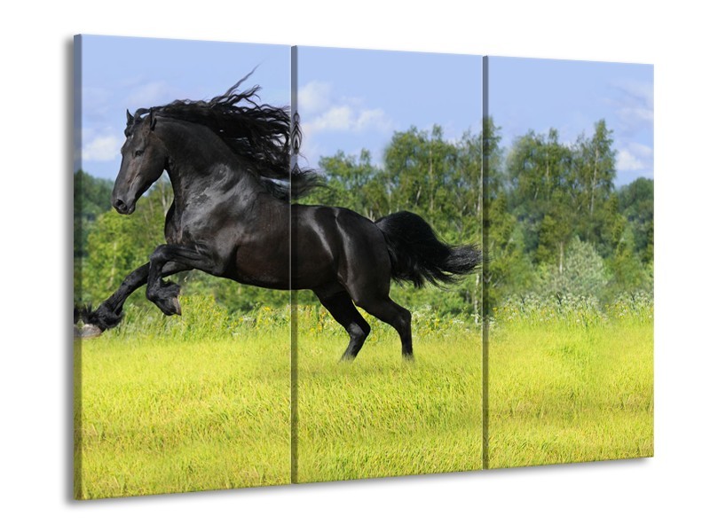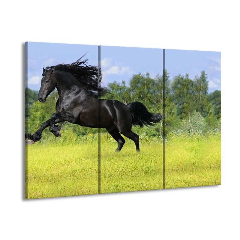 Glasschilderij Paard, Dieren | Zwart, Groen | 60x90cm 3Luik