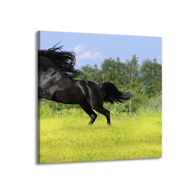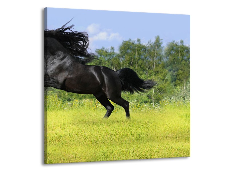 Glasschilderij Paard, Dieren | Zwart, Groen | 70x70cm 1Luik