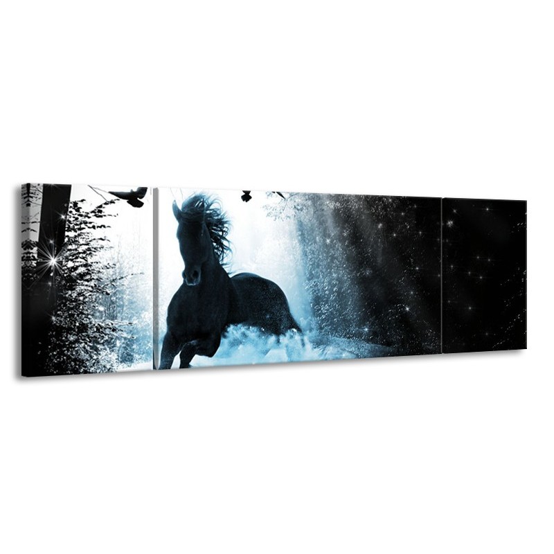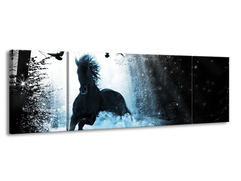 Glasschilderij Paard, Modern | Blauw, Zwart, Wit | 170x50cm 3Luik