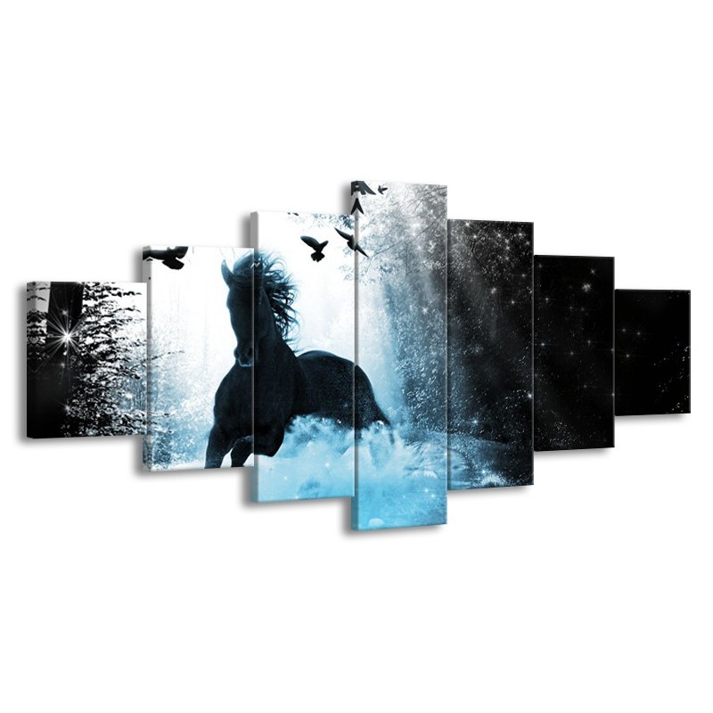 Glasschilderij Paard, Modern | Blauw, Zwart, Wit | 210x100cm 7Luik
