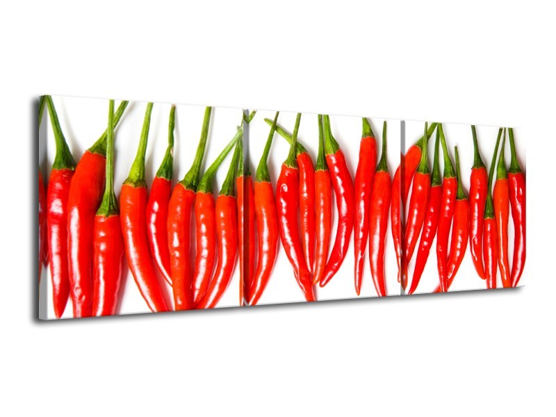 Glasschilderij Paprika, Keuken | Wit, Rood, Groen | 120x40cm 3Luik