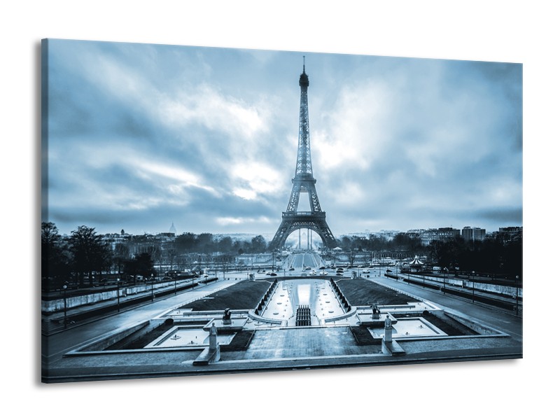 Glasschilderij Parijs, Eiffeltoren | Blauw, Grijs | 140x90cm 1Luik