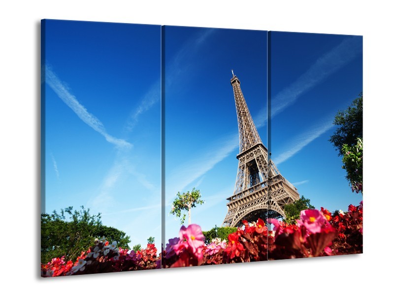 Glasschilderij Parijs, Eiffeltoren | Blauw, Rood, Groen | 60x90cm 3Luik