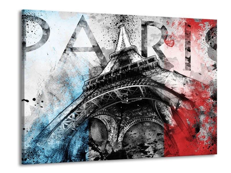 Glasschilderij Parijs, Eiffeltoren | Blauw, Rood, Zwart | 100x70cm 1Luik