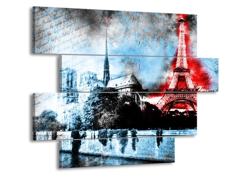 Glasschilderij Parijs, Eiffeltoren | Blauw, Rood, Zwart | 115x85cm 4Luik