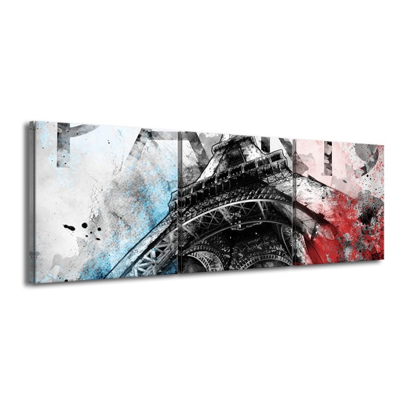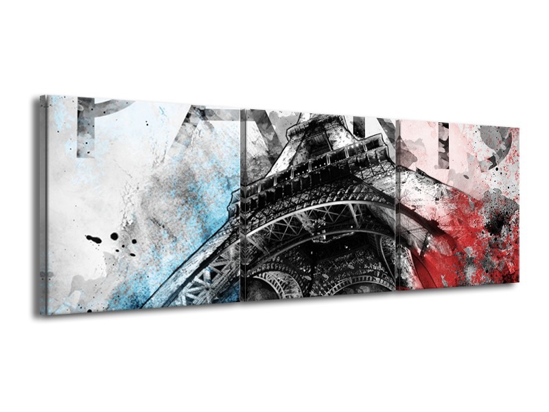 Glasschilderij Parijs, Eiffeltoren | Blauw, Rood, Zwart | 150x50cm 3Luik