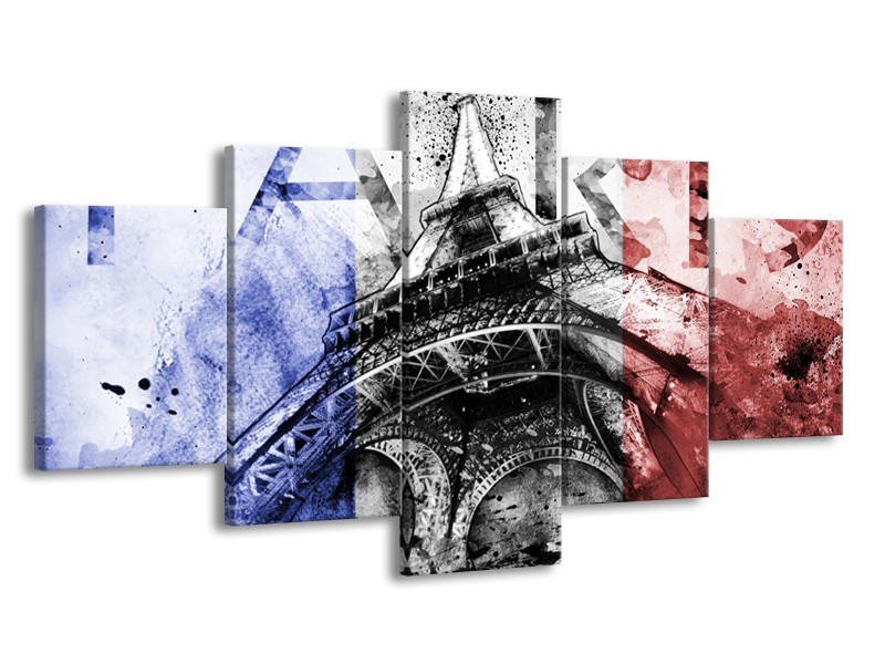 Glasschilderij Parijs, Eiffeltoren | Blauw, Rood, Zwart | 150x80cm 5Luik