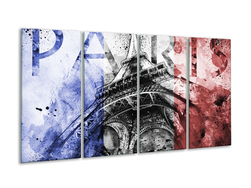 Glasschilderij Parijs, Eiffeltoren | Blauw, Rood, Zwart | 160x80cm 4Luik