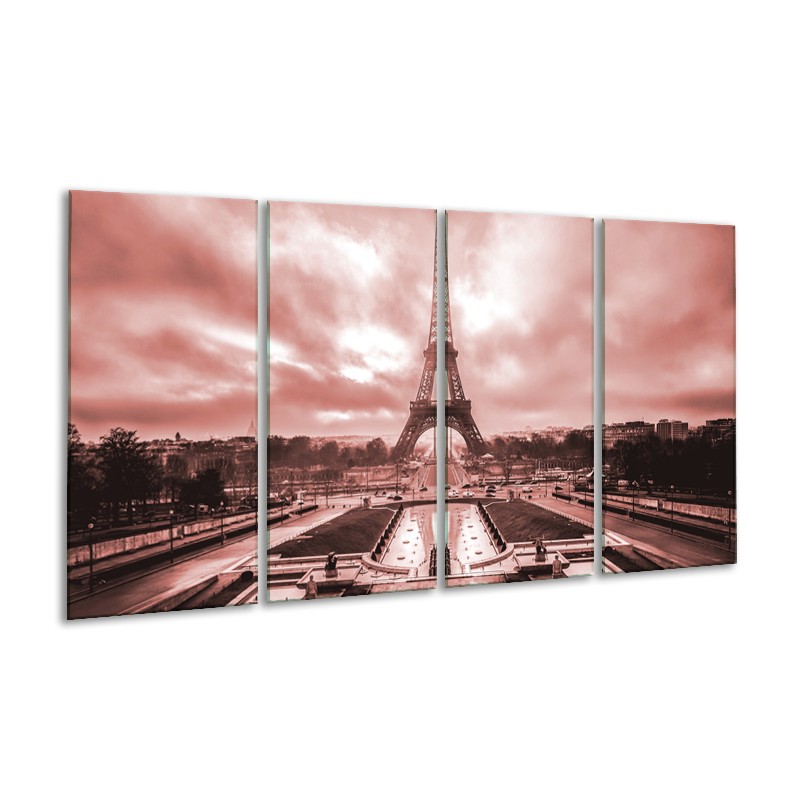 Glasschilderij Parijs, Eiffeltoren | Bruin, Rood | 160x80cm 4Luik