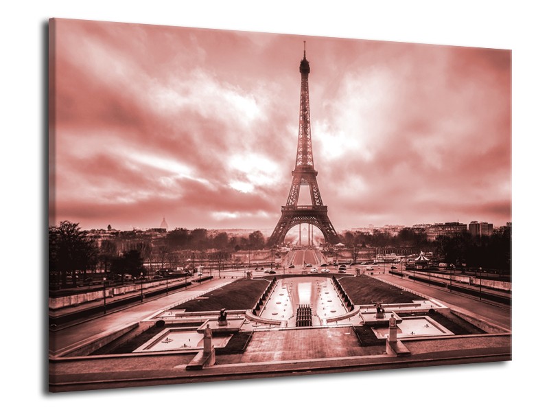 Glasschilderij Parijs, Eiffeltoren | Bruin, Rood | 70x50cm 1Luik