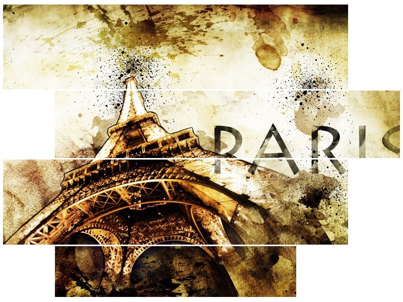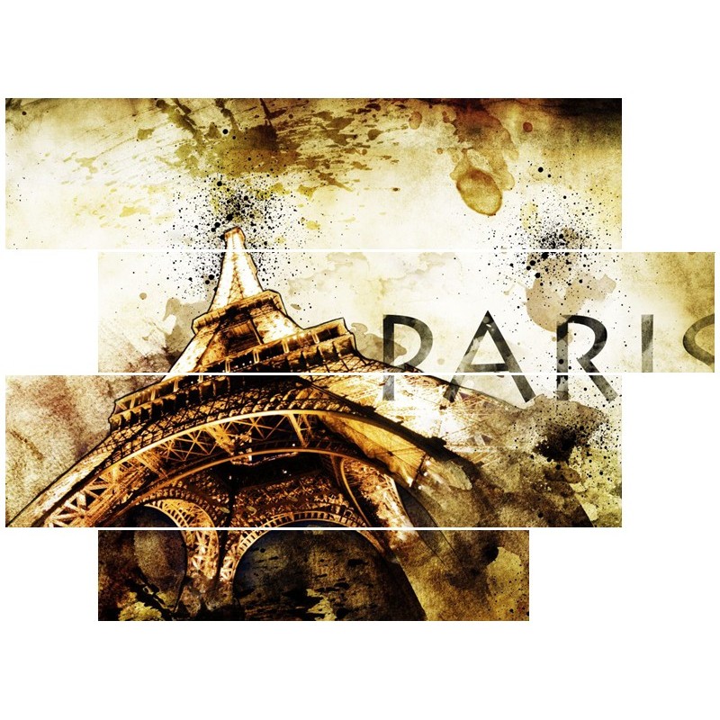 Glasschilderij Parijs, Eiffeltoren | Bruin, Zwart, Geel | 115x85cm 4Luik
