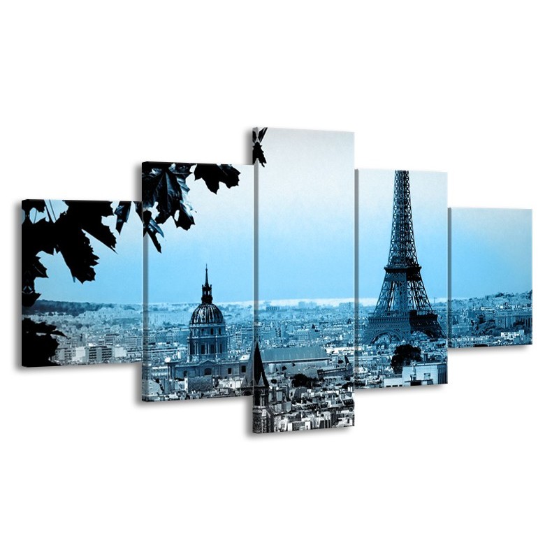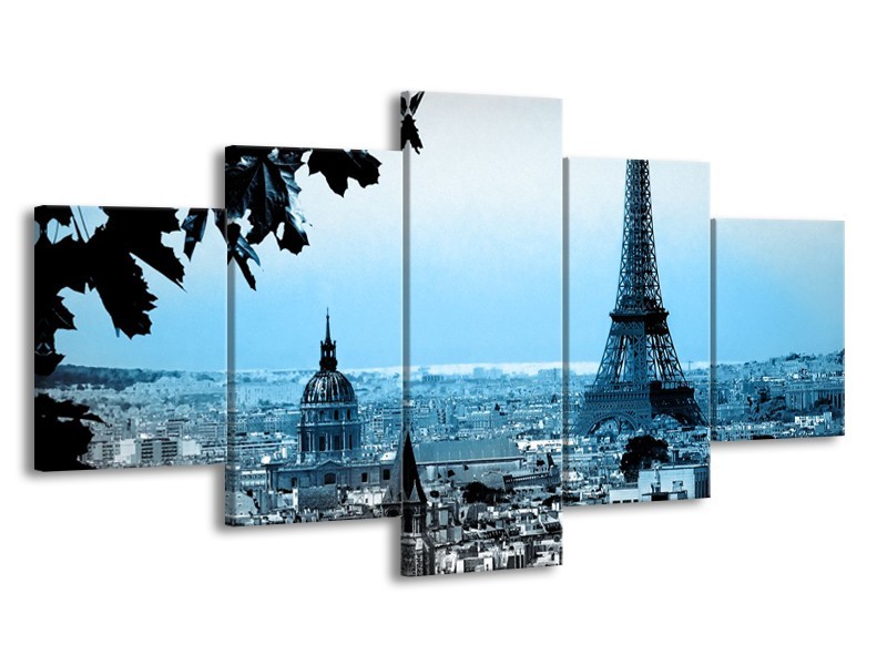 Glasschilderij Parijs, Eiffeltoren | Grijs, Blauw | 150x80cm 5Luik