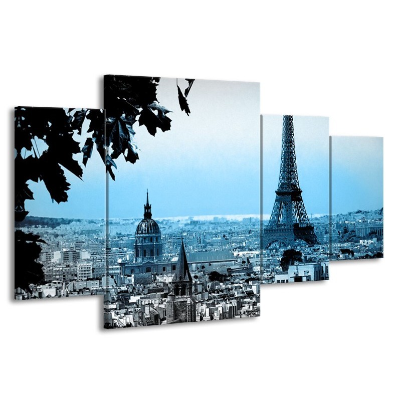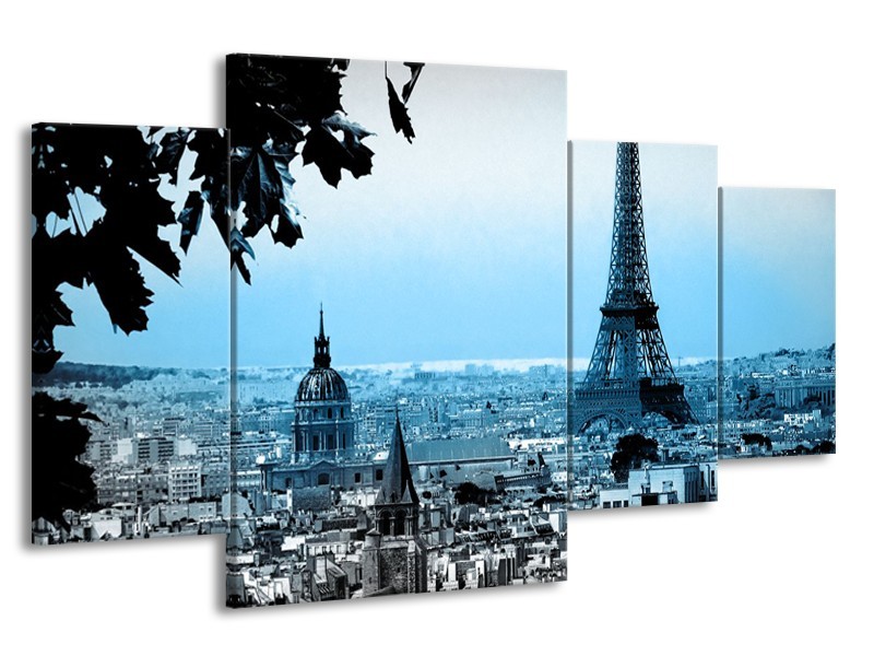 Glasschilderij Parijs, Eiffeltoren | Grijs, Blauw | 160x90cm 4Luik
