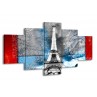 Glasschilderij Parijs, Eiffeltoren | Grijs, Blauw, Zwart | 150x80cm 5Luik
