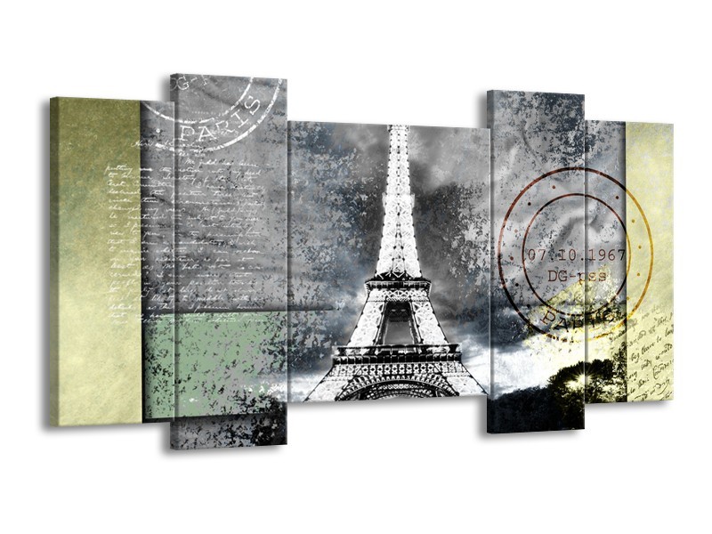 Glasschilderij Parijs, Eiffeltoren | Grijs, Crème, Groen | 120x65cm 5Luik
