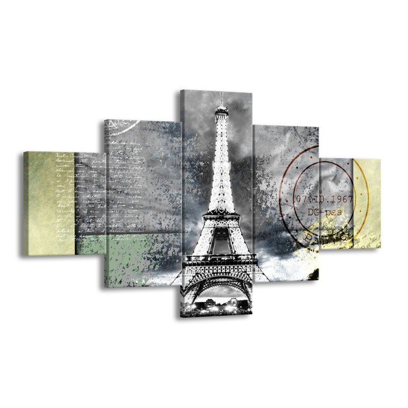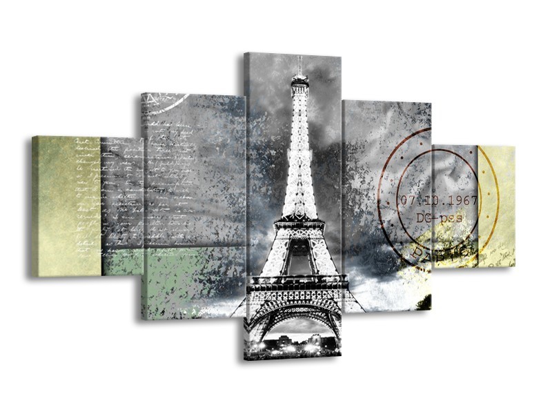 Glasschilderij Parijs, Eiffeltoren | Grijs, Crème, Groen | 125x70cm 5Luik
