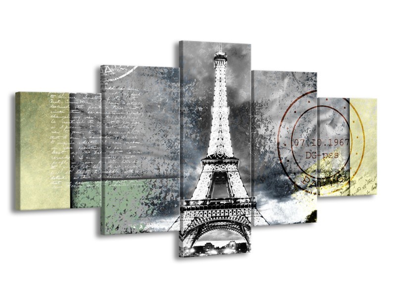 Glasschilderij Parijs, Eiffeltoren | Grijs, Crème, Groen | 150x80cm 5Luik