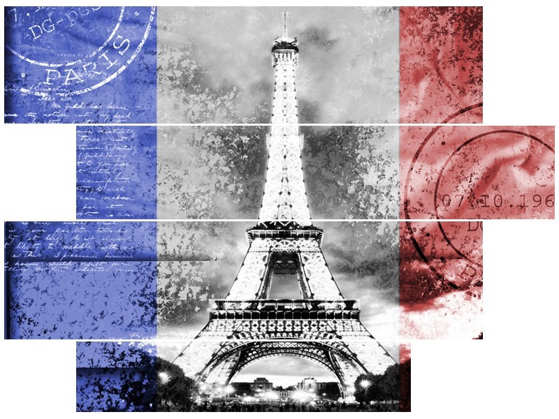 Glasschilderij Parijs, Eiffeltoren | Grijs, Rood, Blauw | 115x85cm 4Luik
